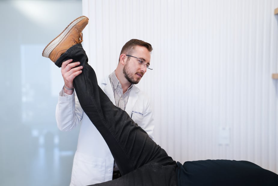 Dolor de espalda baja, en ocasiones hasta los glúteos o las piernas. Es importante revisar si es causado por la compresión de una raíz nerviosa. Usualmente experimentada como ardor, entumecimiento o dolor desde la espalda hasta la parte posterior de alguna o ambas piernas.